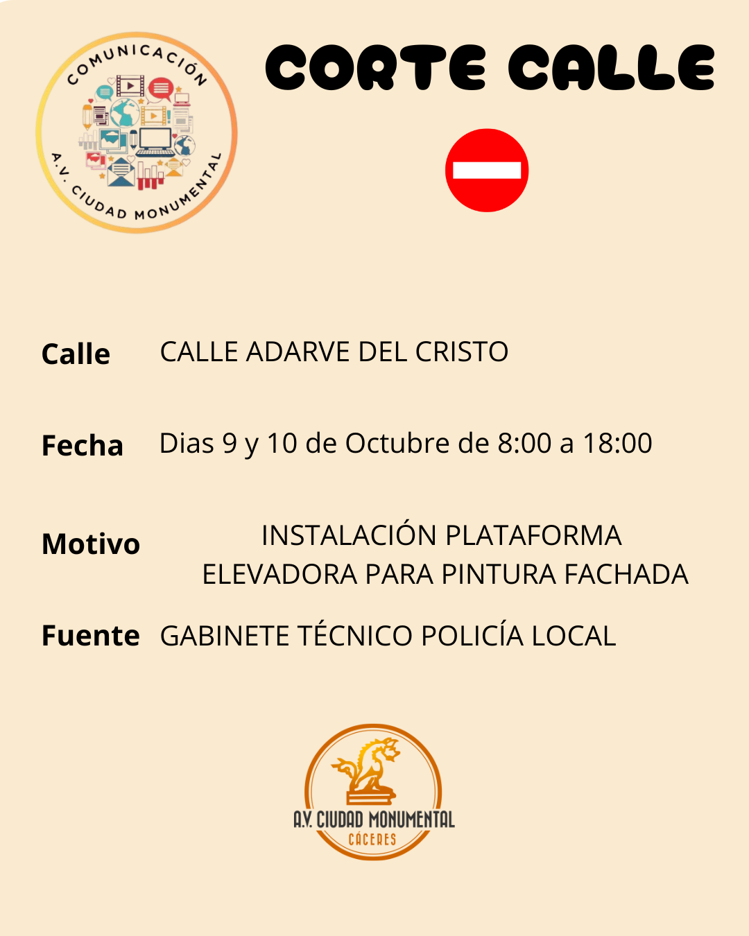 LOS DIAS 24 Y 25 DE SEPTIEMBRE EN HORARIO DE 08:00H A 18:00H POR REPARACIÓN DE ZANJA Y PINTURA FACHADA